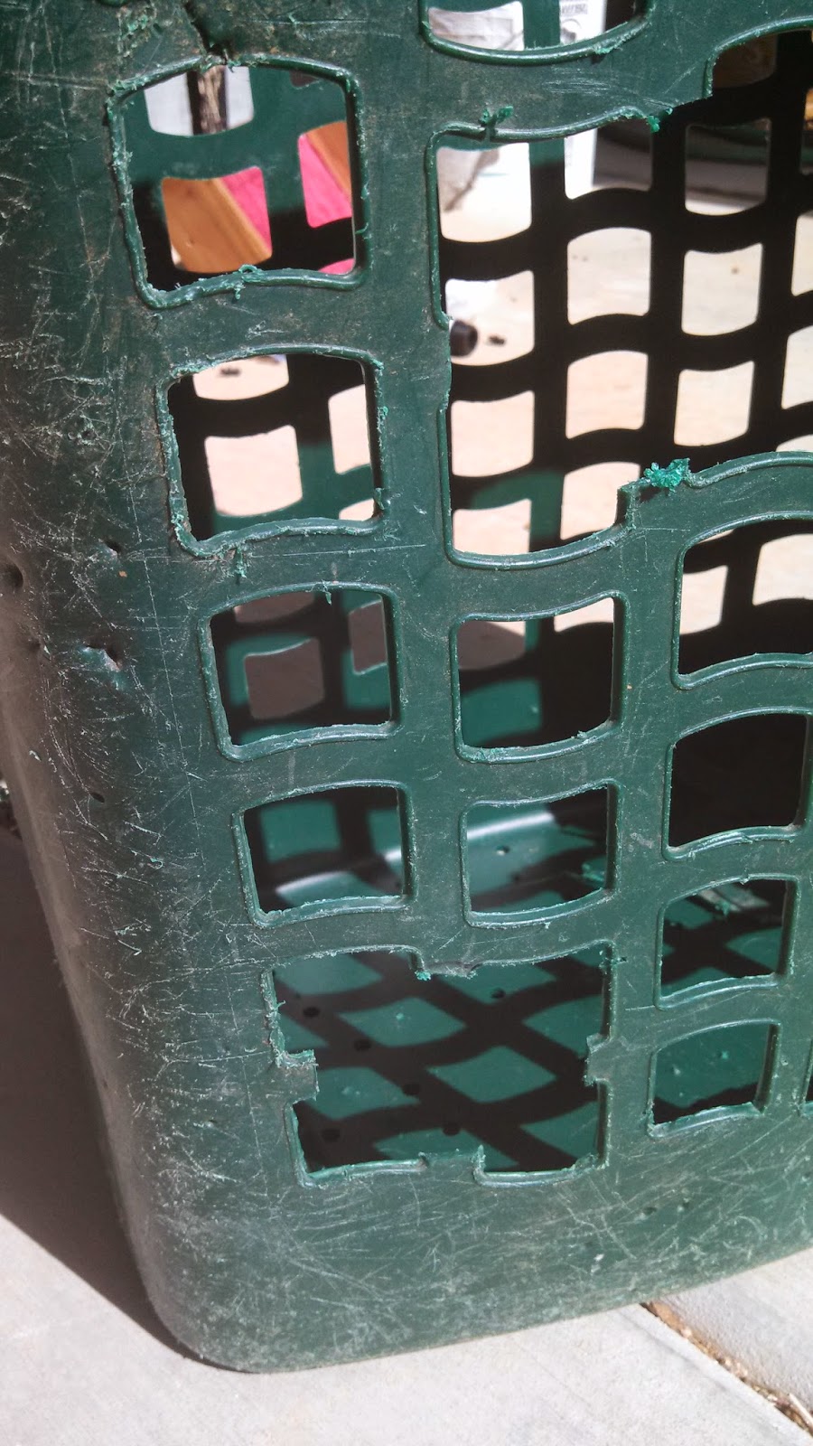 Notice I didn't go ALL the Way around- I left at least 1/3 of the Back of the Barrel solid for Structural Integrity. And I learned my Lesson from the Ugly One..I taped the liner down so it wouldn't blow all-the-heck-over-the-place...