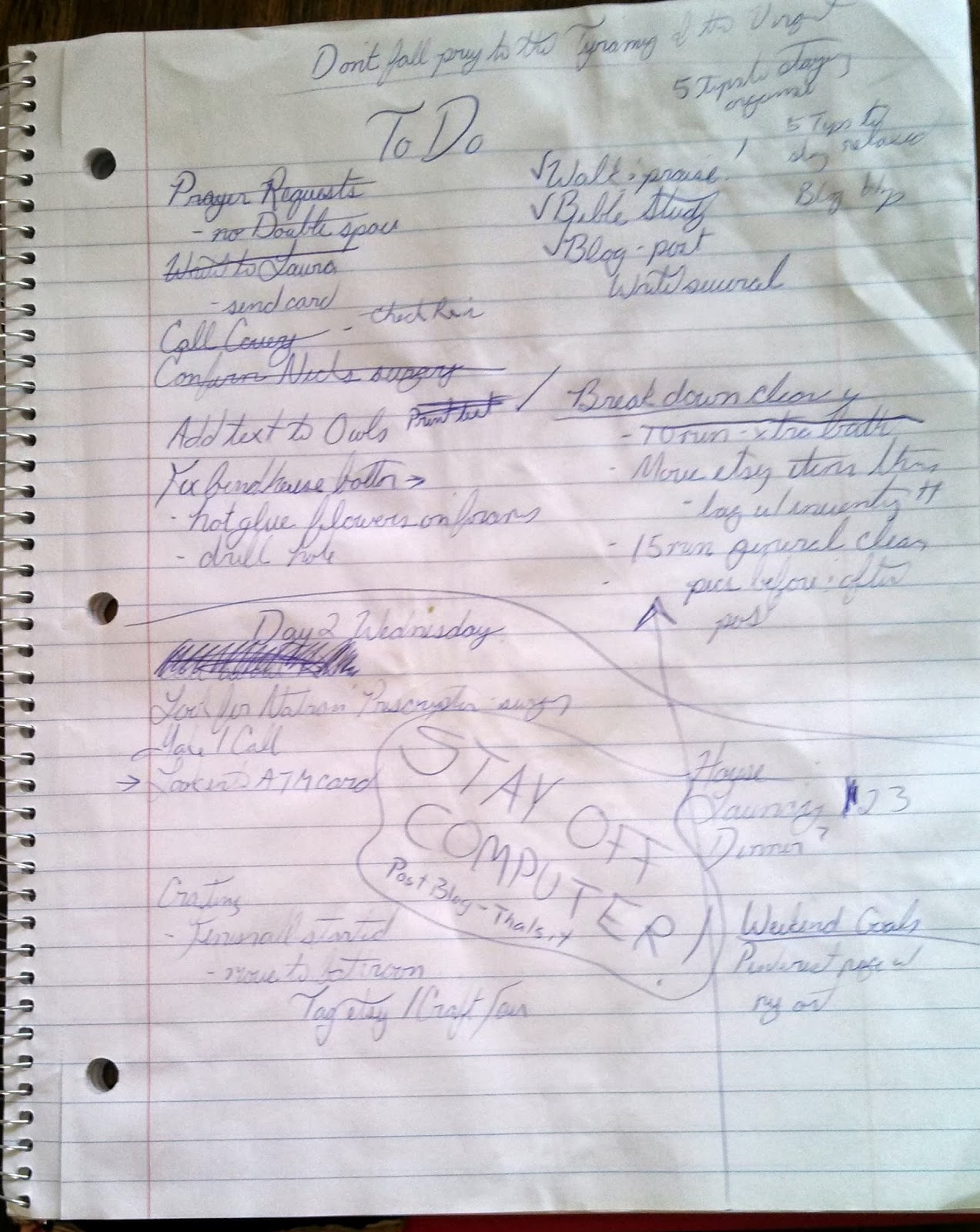 SO- Bright and Early on Monday Morning I sat down with my "Brain" which is the Hot Pink Notebook I can't live without.