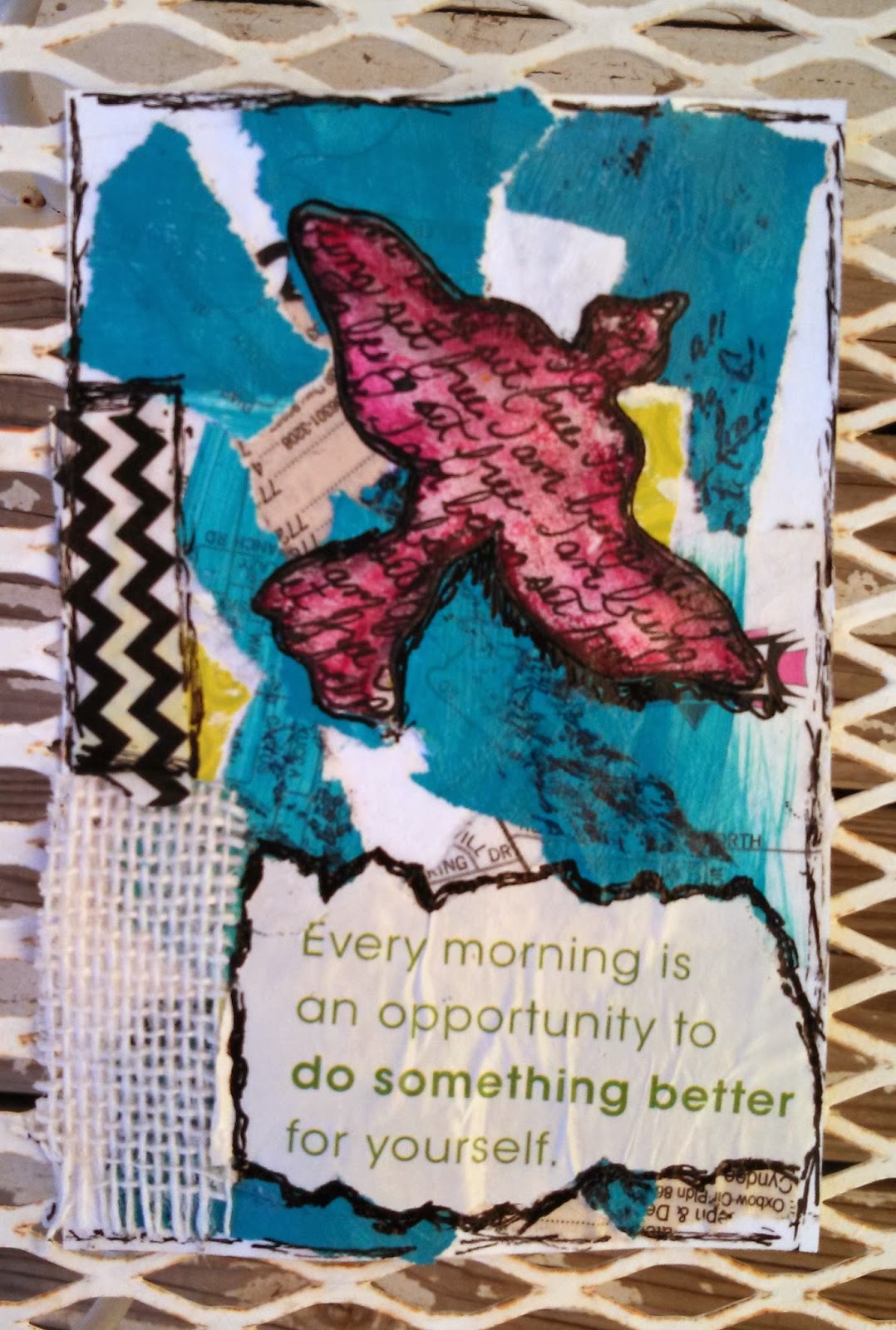 I added even more 'stuff' on top- Sophie said to call it 'Ephemera' but I'm not feeling quite that 'Fancy' today:)