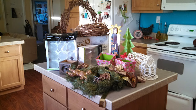 Add the Pre-requisite Pine Cones (Free)....Some Banged up, Backwards, Pink Ornaments that Fell off Tomorrow's Project and Voila!