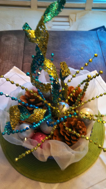 Warning!!! I do Not do 'Arrangements' at all! My idea of 'Arranged' is throwing a bunch of Pine Cones in a bowl....ok, I guess that's pretty much what I did here....hmmm....