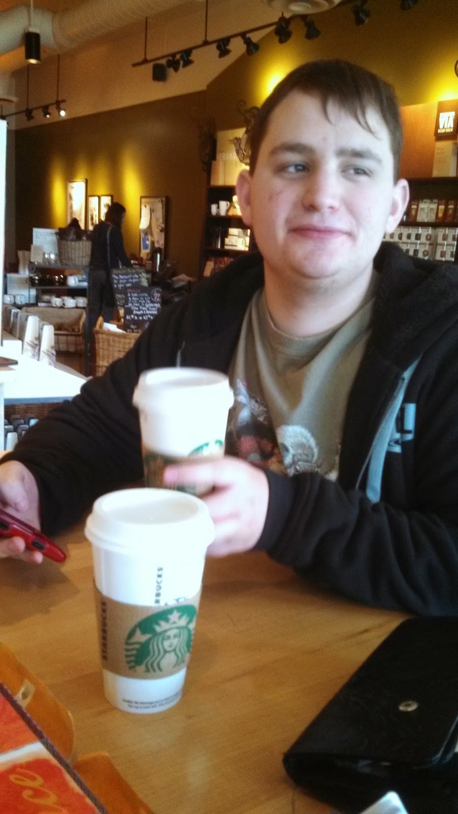 This month was Nick's eight month Check up. We are blessed with an "All Clear"! Woohoo! We celebrated with Starbucks...Nick is drinking Hot Chocolate...the Gateway Drug....:)